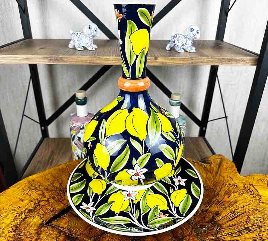 Zitrone gemusterte 30 cm Iznik-Vase und 30 cm Fliesenplatte